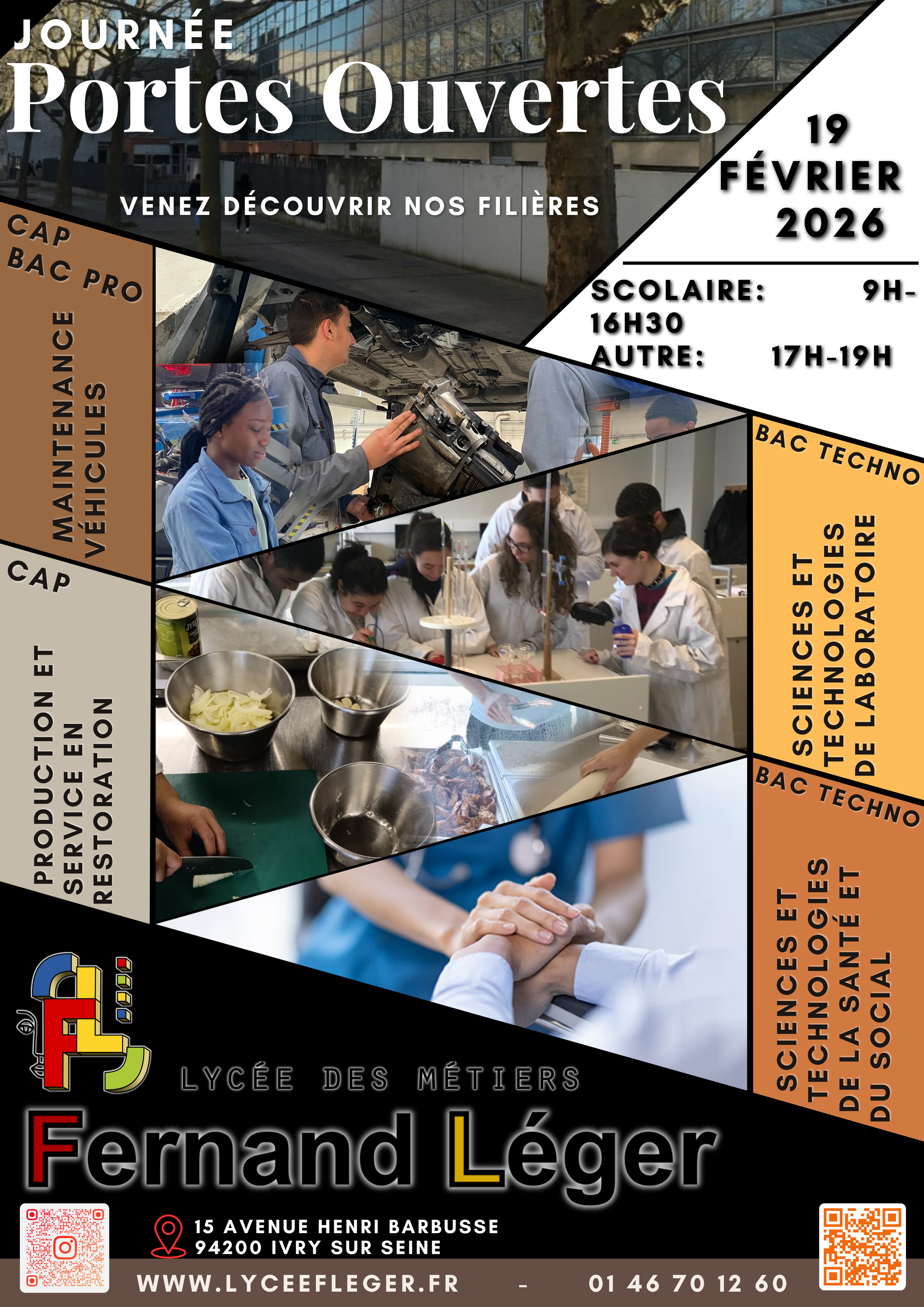 Le lycée Fernand Léger est heureux de vous annoncer l'organisation de ses Portes Ouvertes